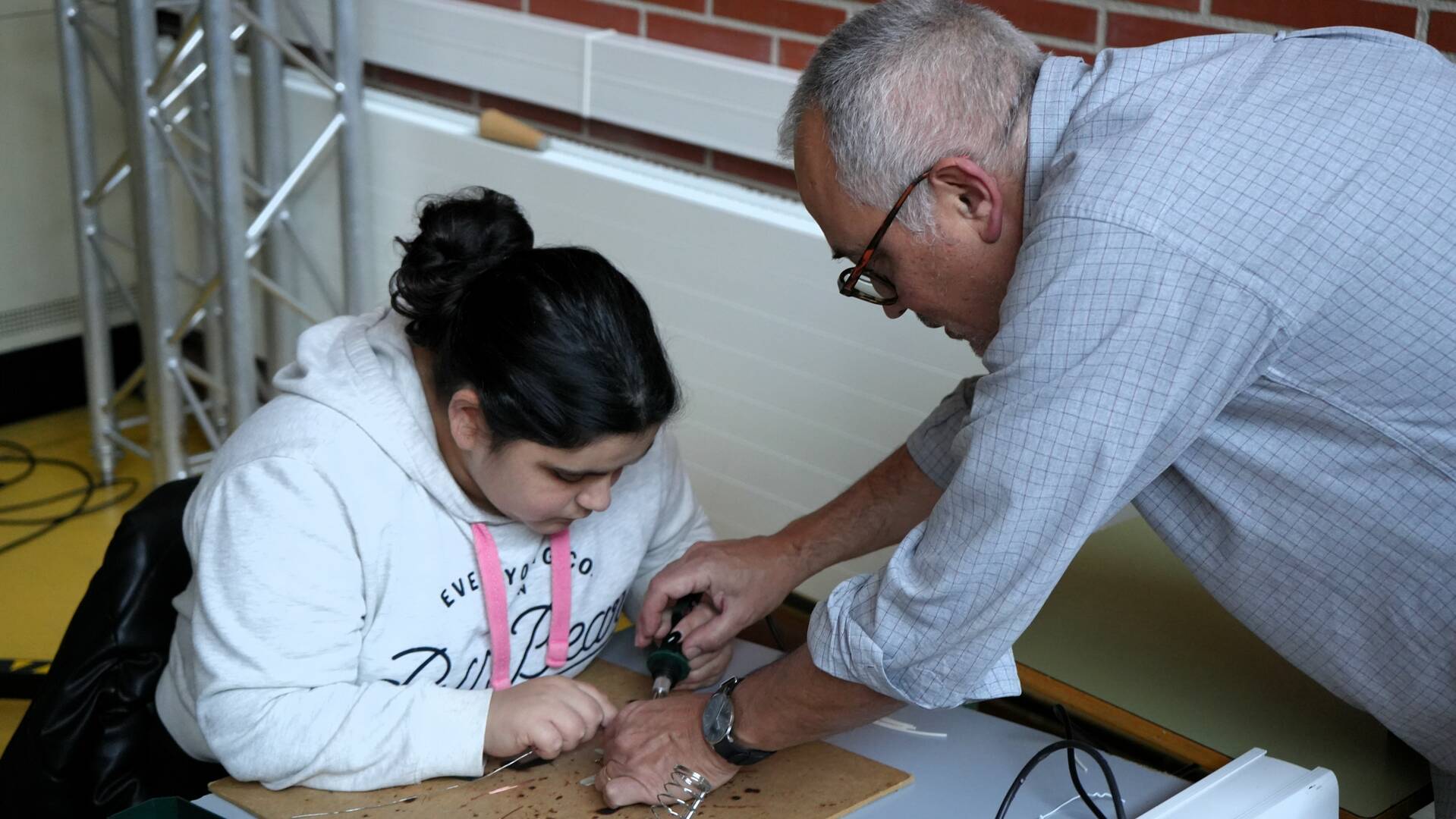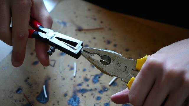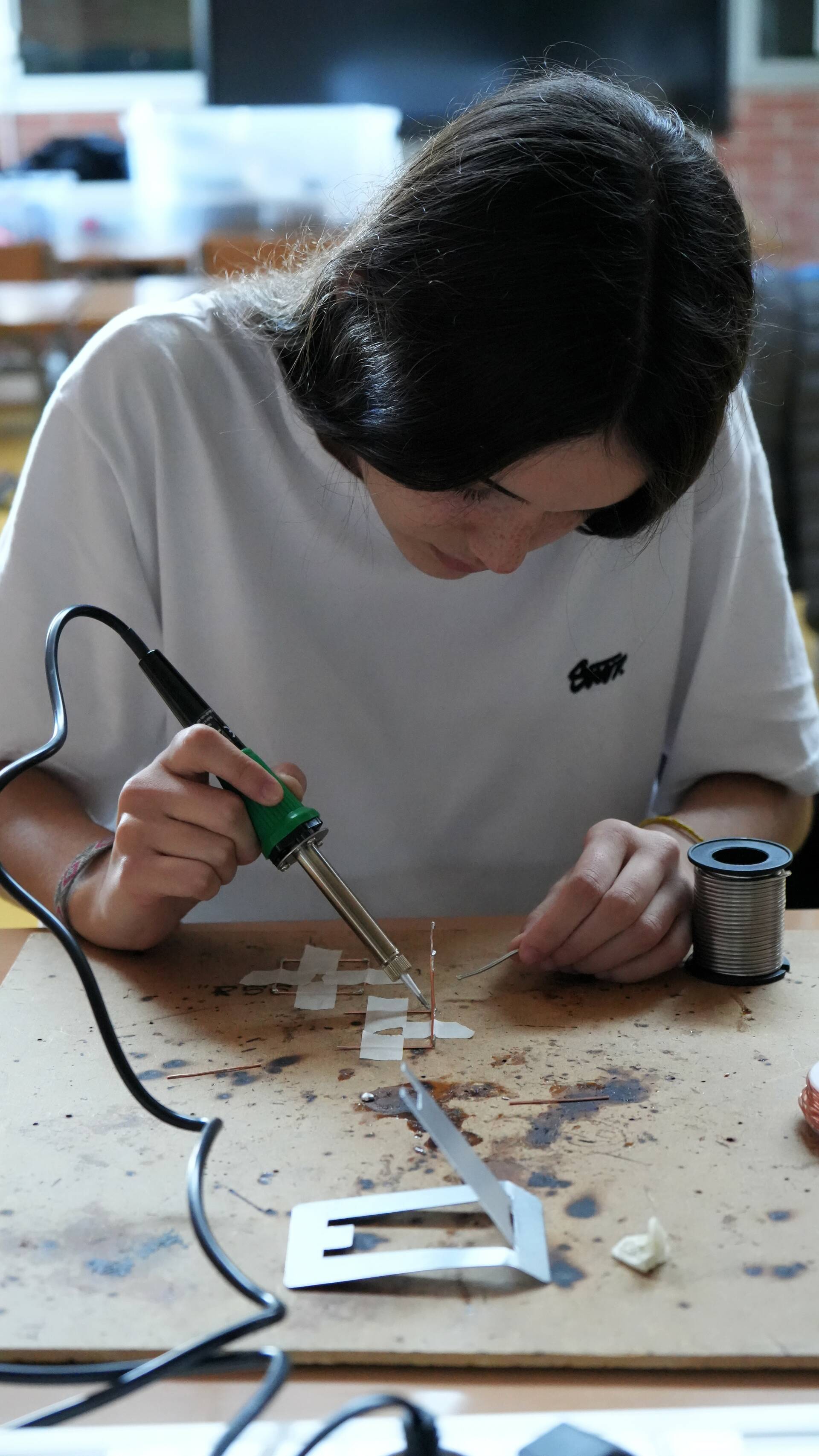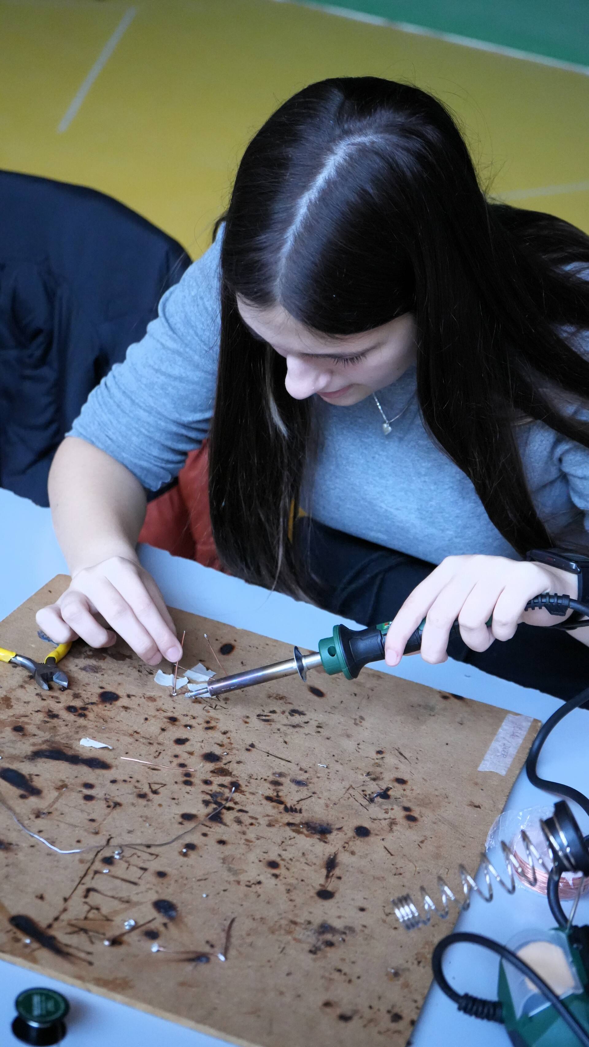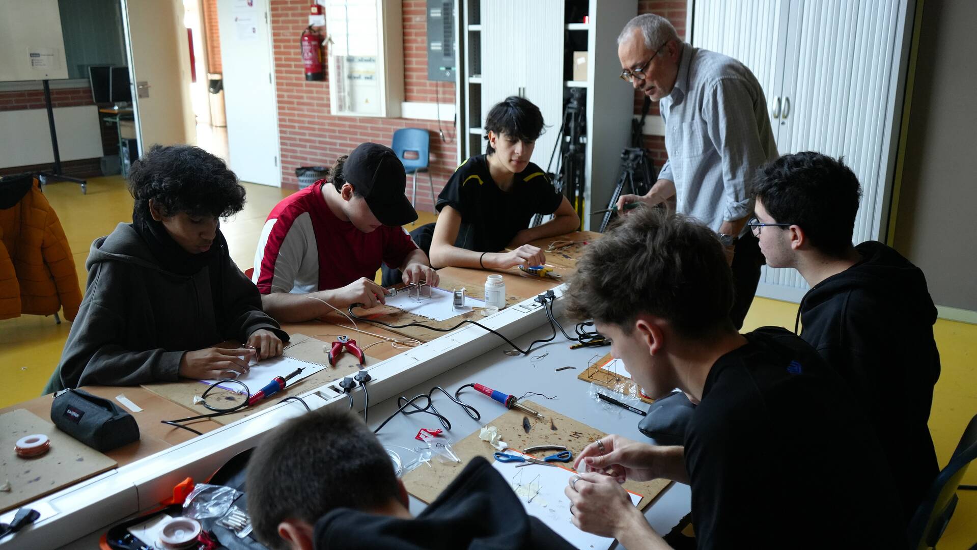 L’alumnat de 1r del CFGM de Vídeo, discjòquei i so realitza pràctiques de soldadura en el mòdul: Muntatge i instal·lació d’equips de so. Els nois i noies creen figures geomètriques per agafar destresa amb el soldador i aprendre a ser polits i precisos amb les unions metàl·liques. També ho practiquen creant una escultura lliure. Després apliquen la tècnica de soldar a la fabricació i reparació de cablejat d’àudio.