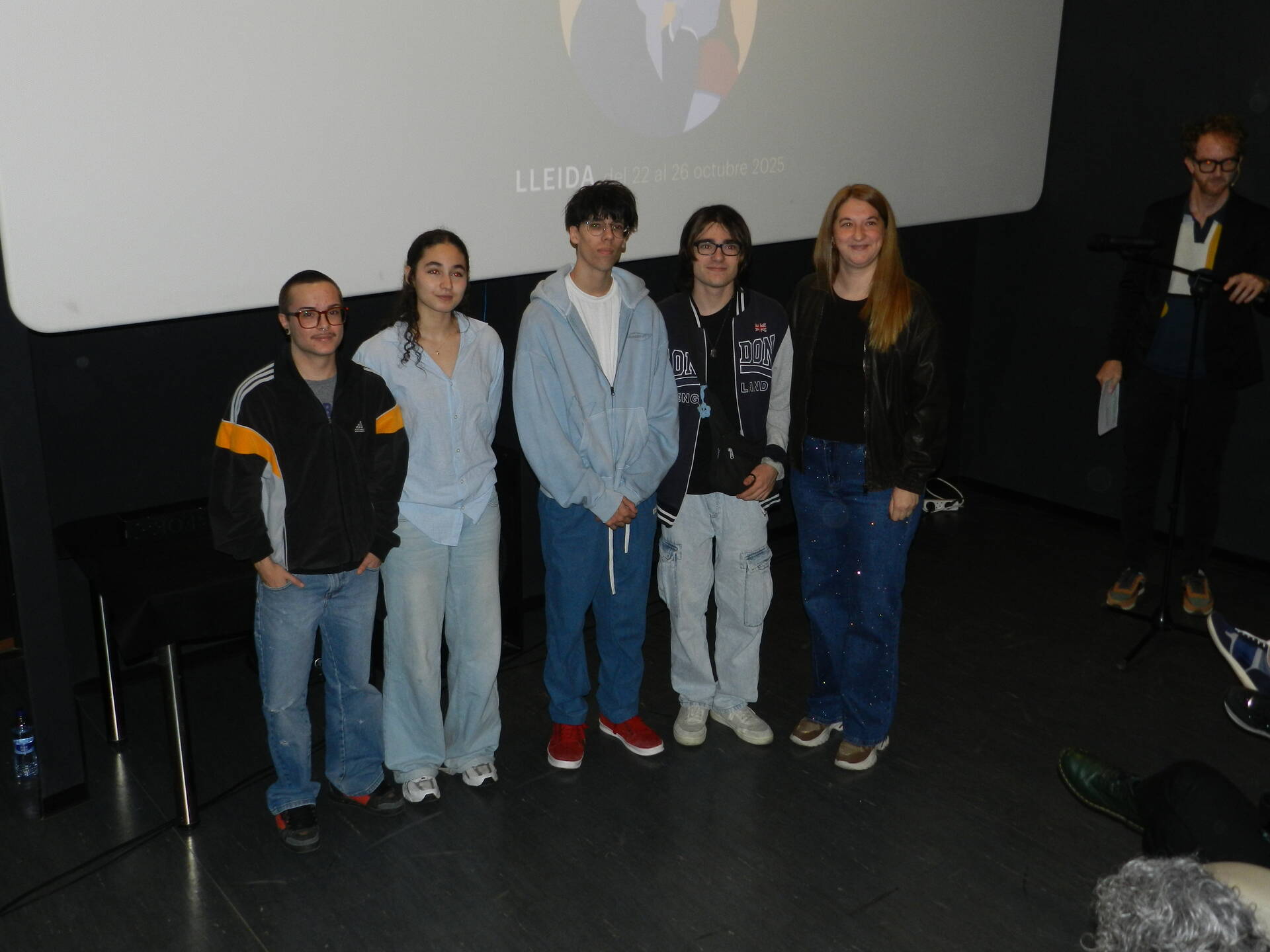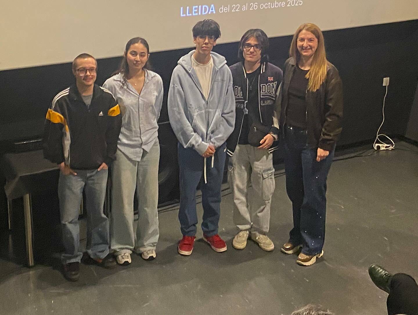 L’alumnat de 2n del CFGS d’Il·luminació, captació i tractament d’imatge ha tingut l’oportunitat de crear dos projectes audiovisuals per a la cloenda del Som Cinema de Lleida. Els nois i noies han rodat i editat durant els dies previs i de celebració del festival dos històries en pla seqüència titulades «Tot o res» i «Reflejo», que s’han projectat a la cloenda, que ha tingut lloc a Screenbox. Un dels curts ha comptat com a actors amb tres estudiants de l’Aula Municipal de Teatre de Lleida. Una representació de l’alumnat, juntament amb una professora, ha presentat els curts durant l’acte, davant la presència d’organització, membres del jurat, i professionals del sector audiovisual premiats en aquesta 16a edició del certamen. Aquesta activitat pretén afavorir que el nostre alumnat de cicles formatius d’imatge i so pugui mostrar la seva feina davant els professionals, però també que conegui i estableixi lligams amb la indústria del sector. Per això, agraïm al festival que doni suport i sigui un aparador per a la creació audiovisual del jovent i dels nostres estudiants.
