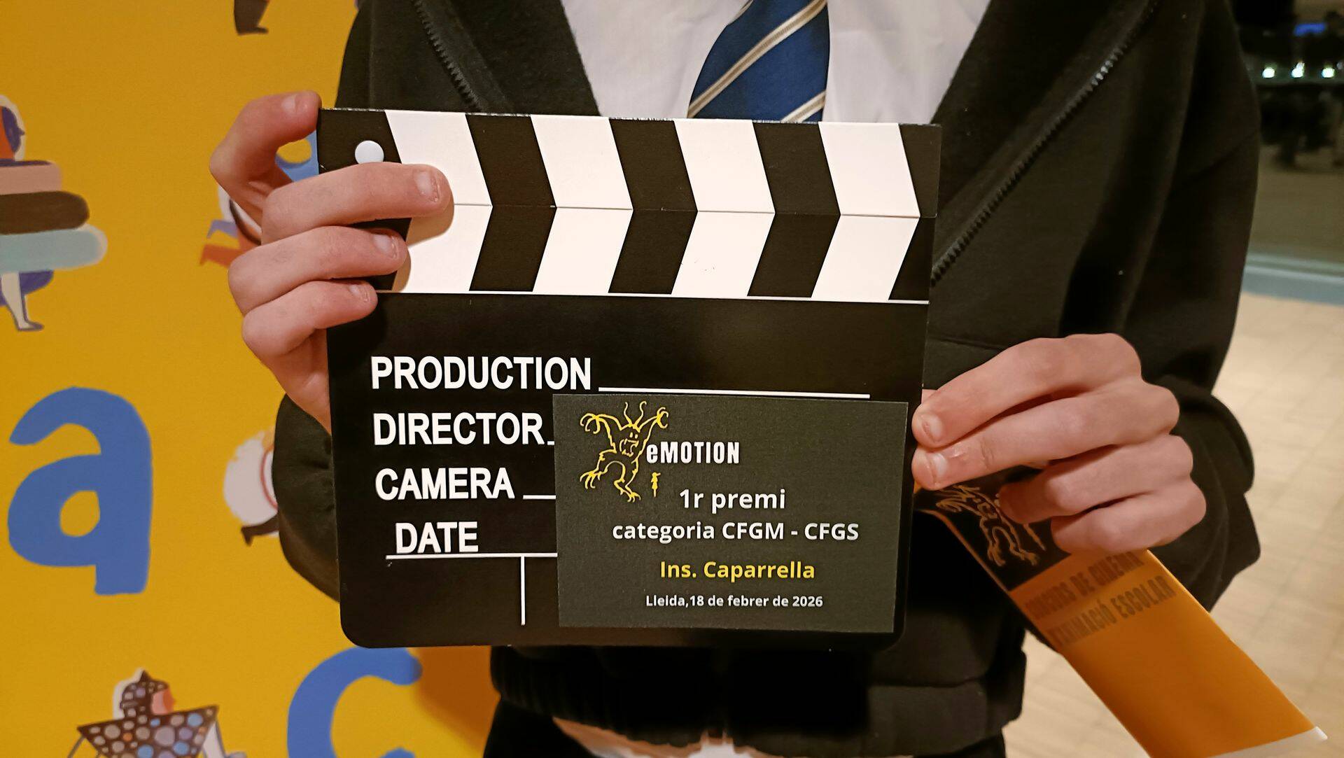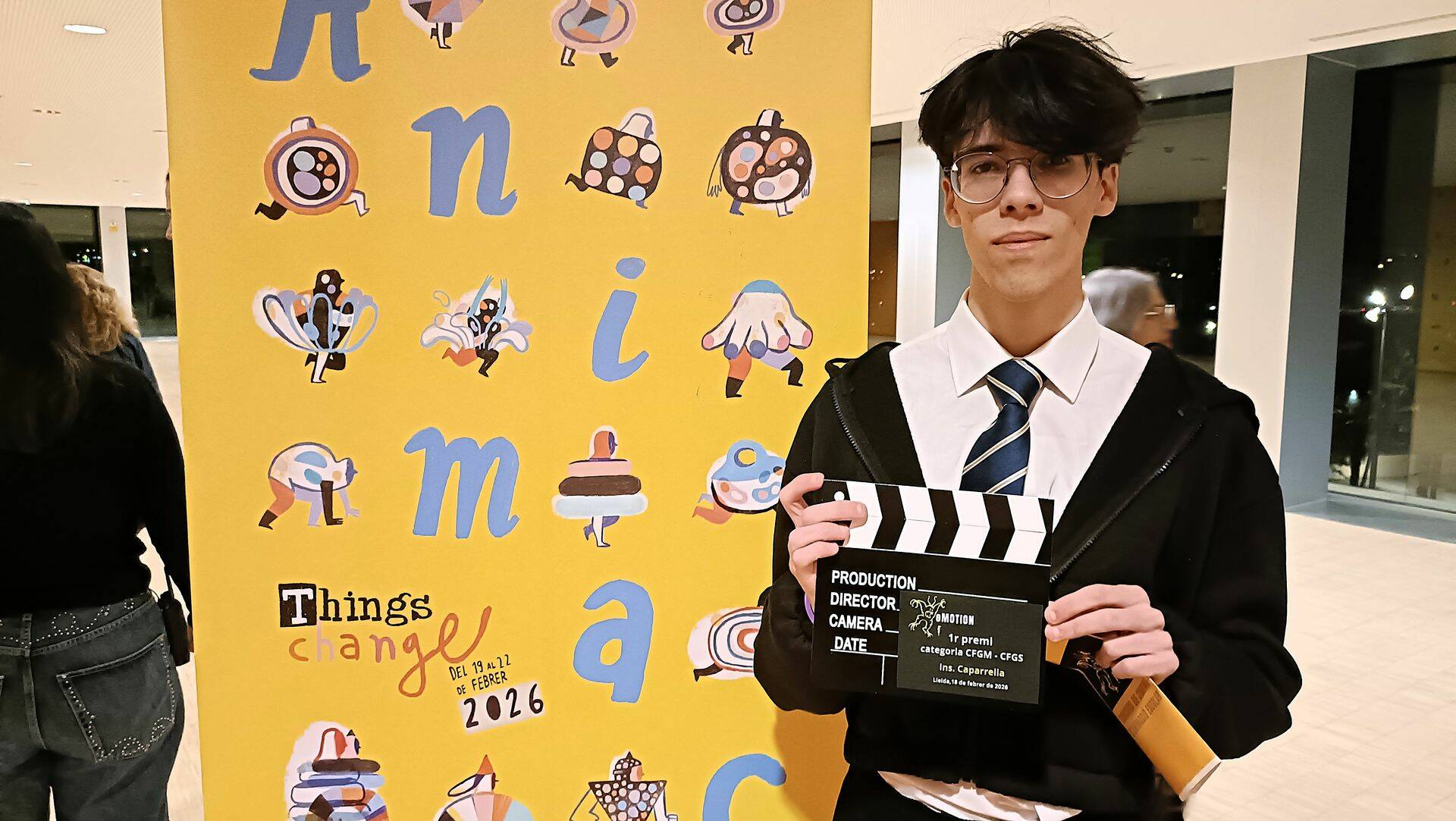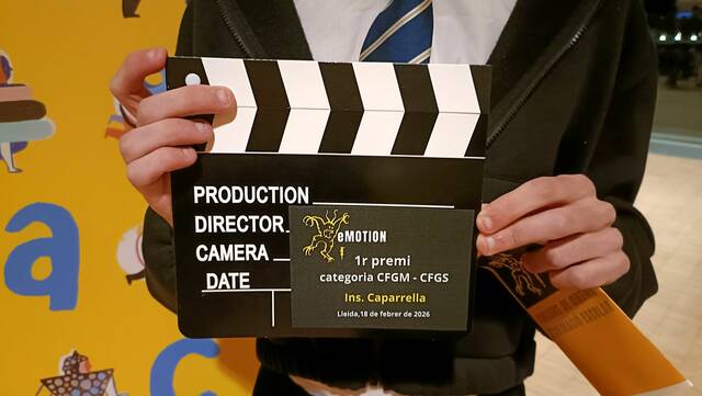 L’alumne Ian Moreno de 2n del CFGS d’Il·luminació, captació i tractament d’Imatge, ha guanyat el premi e-Motion en la categoria de cicles formatius amb el seu audiovisual en Stop Motion titulat “Animació Viva”. L’Ian ha recollit el premi en una gala celebrada a la Llotja de Lleida acompanyat d’altres companyes de classe que també concursaven i on s’han projectat els treballs seleccionats. Els projectes s’han realitzat en el mòdul de presa audiovisual del cicle.