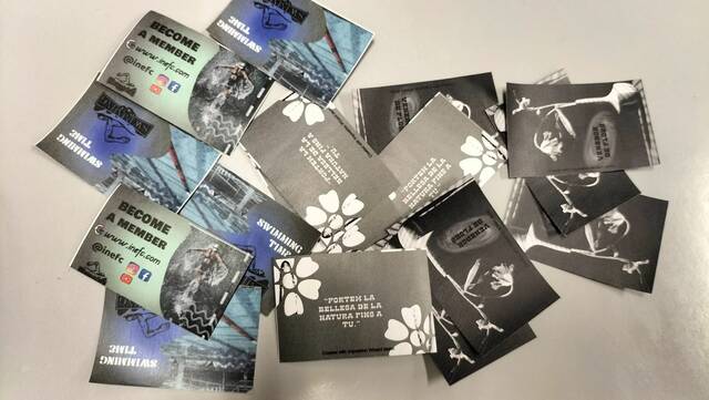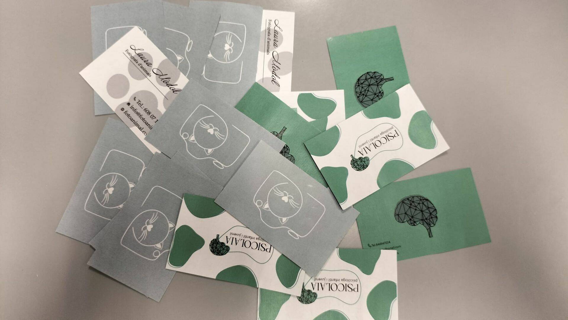 L'alumnat de segon curs de Preimpressió digital ha dissenyat, ha preparat per a la impressió, ha imprès i tallat diverses targetes personals a dues cares. L'activitat l'han feta en el marc del mòdul Imposició i obtenció de la forma impressora. Per fer-ho han treballat amb programari com Illustrator per al disseny i composició i després amb Imposition Wizard per a preparar la impressió a dues cares