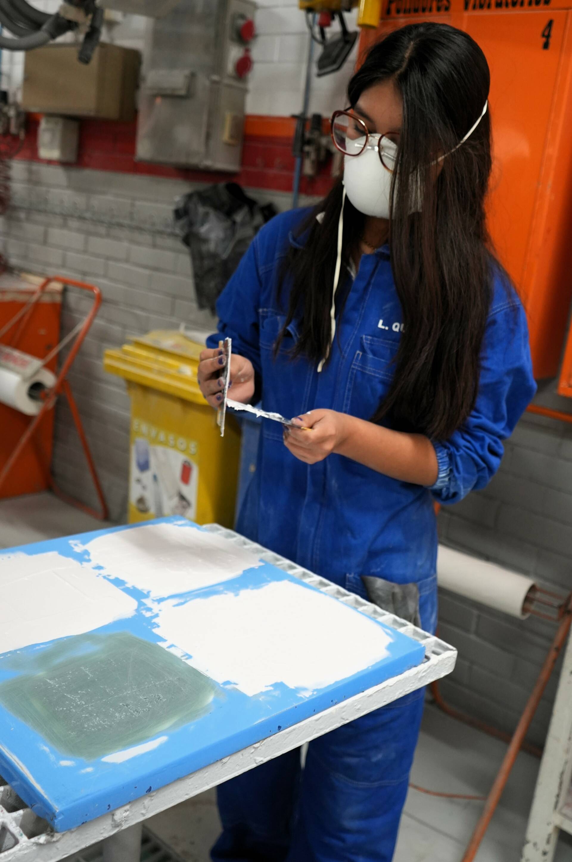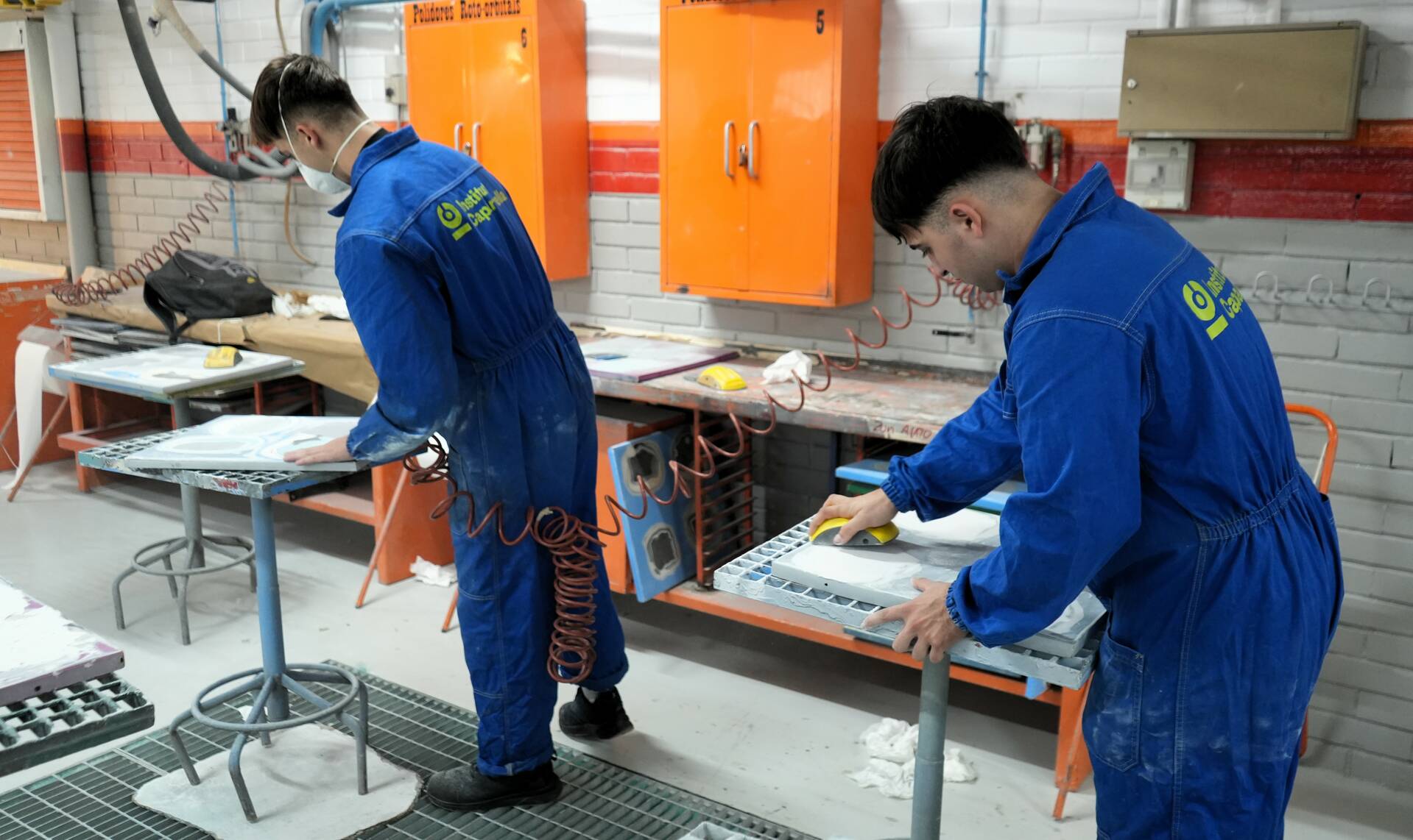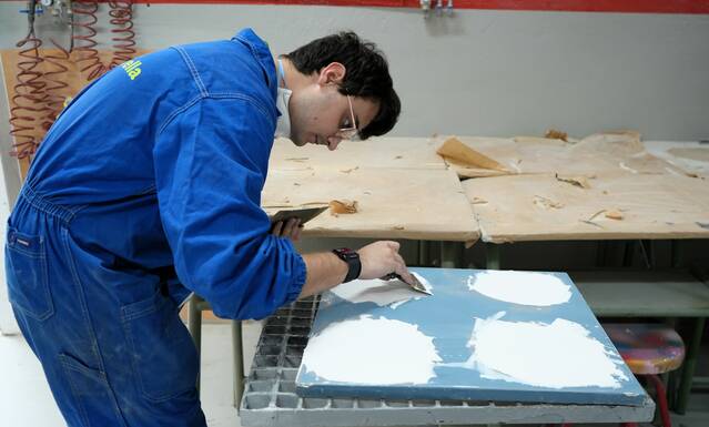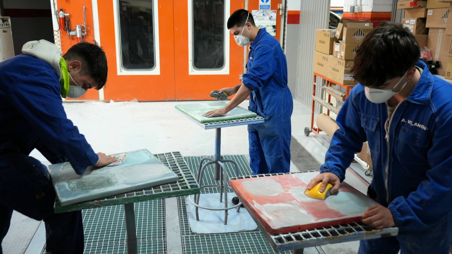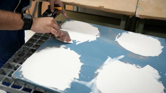 L’alumnat de 2n del CFGS d’Automoció realitza pràctica d’aplicació de massilles. Aquesta tasca implica, primer, preparar la superfície i mesclar la massilla, sense que quedin grumolls. Tot seguit s’aplica en capes fines i uniformes amb una espàtula i, finalment, després de l’assecatge, cal polir per obtenir un acabat llis. Per omplir els desperfecte profunds, es necessari aplicar diverses capes, deixant assecar cadascuna abans d’aplicar la següent.
