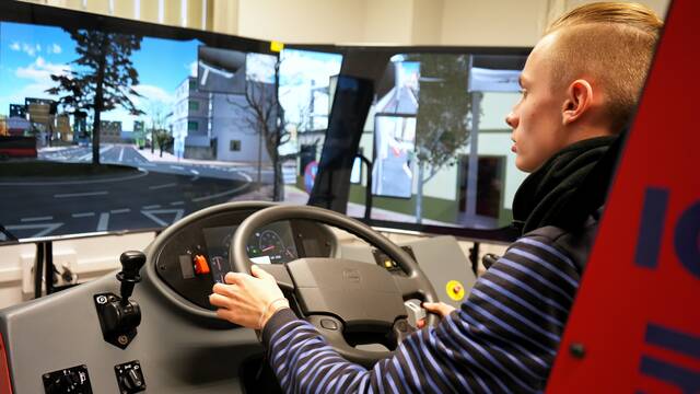 L’alumnat del CFGM de conducció de vehicles de transport per carretera, que va néixer per cobrir les necessitats de xòfers que té el sector actualment, disposa d’un simulador on realitza les pràctiques de conducció. L’aparell serveix perquè els estudiants emulin la realitat al volant d’un conductor de camió o d’autobús. Dos docents d’autoescola especialitzats els ajuden i guien en la conducció inicial, racional i segura.