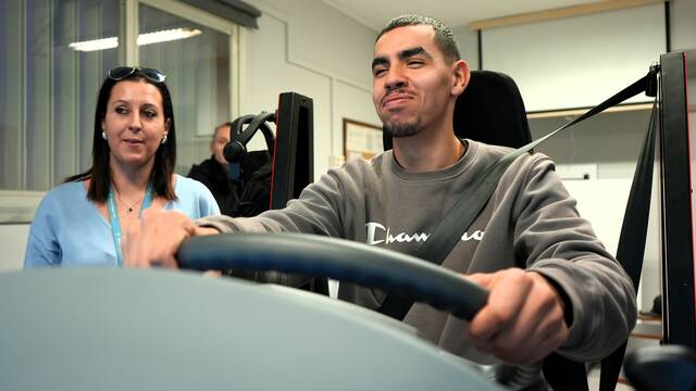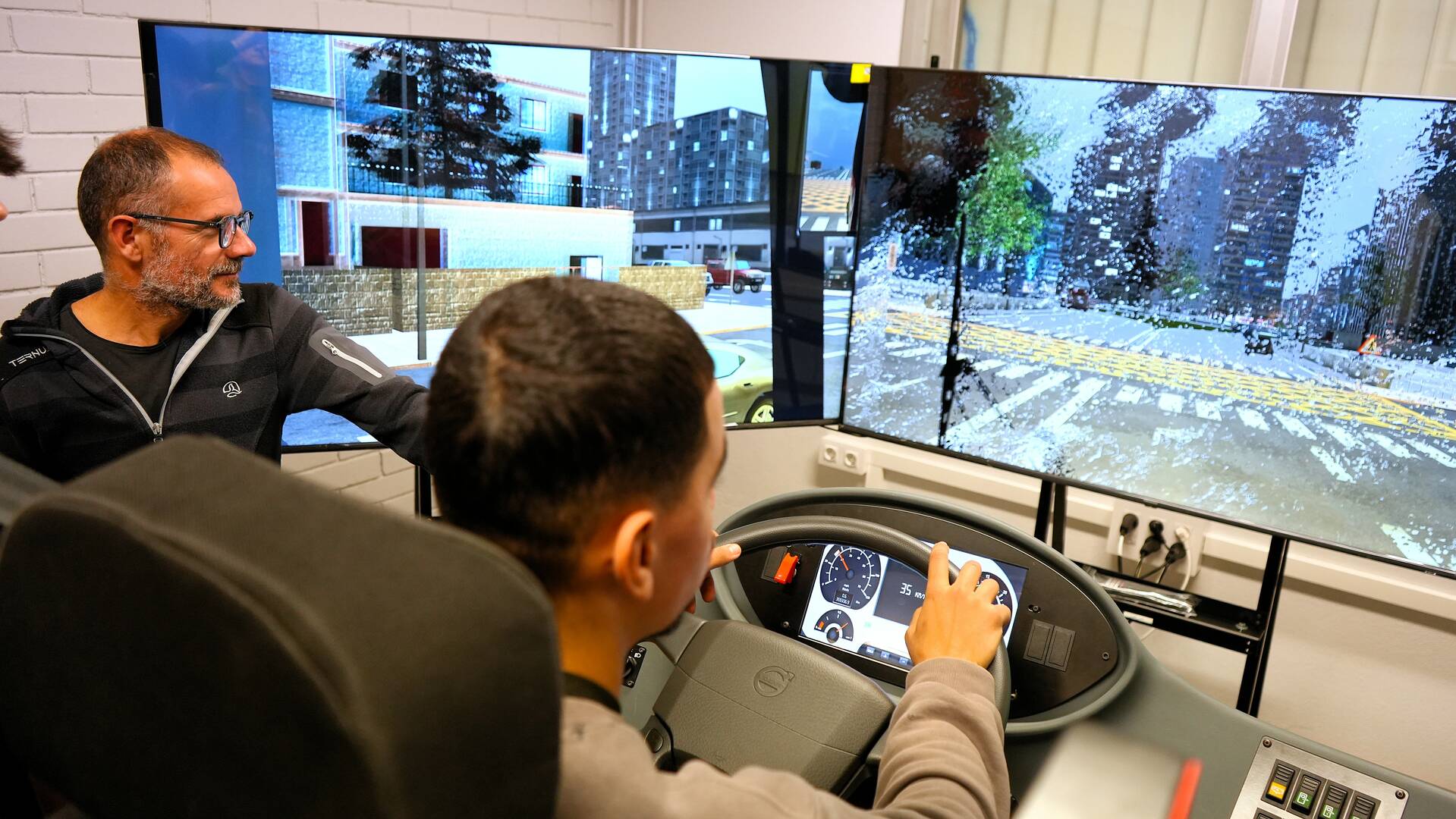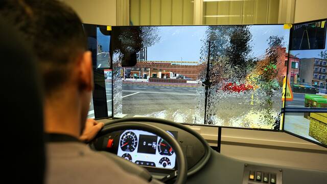 L’alumnat de conducció de vehicles de transport per carretera fa pràctiques amb el simulador