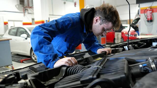 Un vehicle híbrid d’última generació per practicar a transport i manteniment de vehicles
